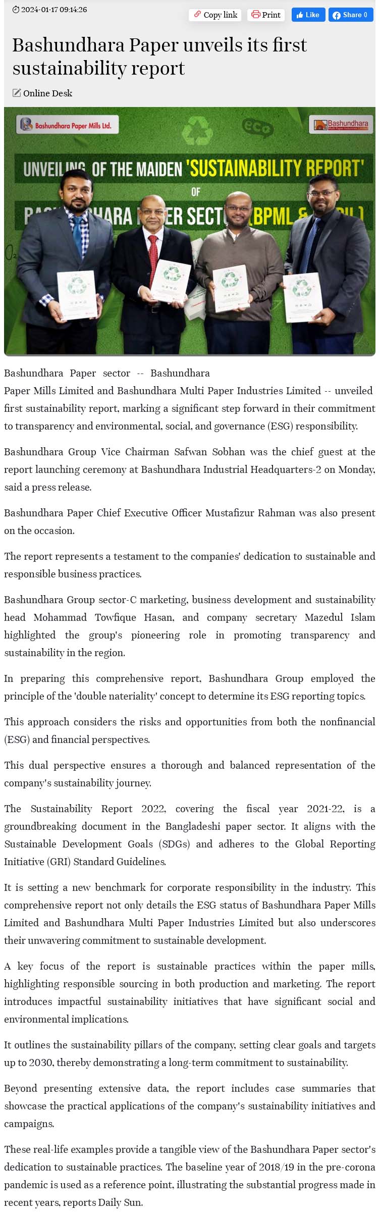 Link: Financial Express | Samakal | Amader Somoy | Karatoa | Manabzamin | Sharebiz | Dhakatimes24.com | Financialexpress.com.bd | Risingbd.com | Kalerkantho.com | Newsg24.com | Nayadiganta.com | bd-pratidin.com | 71sangbad.com | Sharebiz.net | Ajkerpatrika.com | Desh Rupantor | Dhaka Times | Tbsnews.net | Business Standard | Bangladesher Alo | Ajkerdarpon.com | Amarnews.com.bd | Rangpur24.com | Bhorer Darpan | Swadesh Pratidin | Bangalpress.com | Sokaler Somoy | Banglapratidin24.com | Janobani.com | Messenger | Khoborer Kagoj
