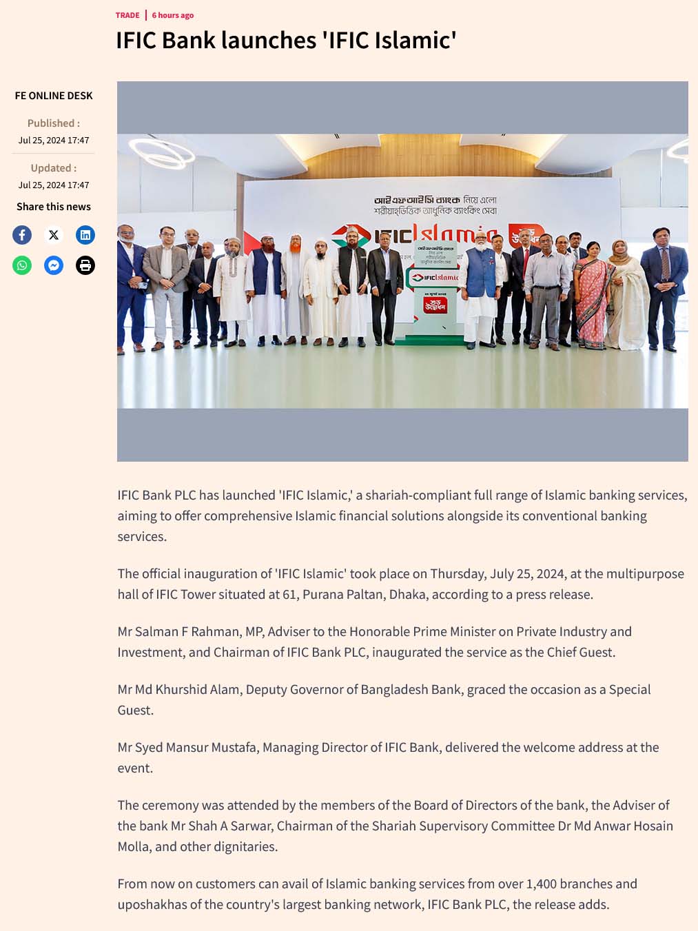 Link: Daily Sun | Daily Observer | Dhaka Tribune | Financial Express | New Age | New Nation | Prothom Alo | Samakal | Jaijaidin | Janakantha | Amader Somoy | Kaler Kantho | Amar Sangbad | Manabzamin | Bonik Barta | Manob Kantha | Arthosuchak.com | Bonikbarta.net | Financialexpress.com.bd | ATN News | Channel i | DBC | NTV | TheDailyStar.net | Dhakatribune.com | Corporatesangbad.com | Observerbd.com | Ntvbd.com | Independent TV | Sharebazarnews.com | Dailysokalersomoy.com | Desh Rupantor | Kalbela | Orthosongbad.com | kholabazar24.com | Ajker Patrika | Business Post | Protidiner Bangladesh | Economipost.com